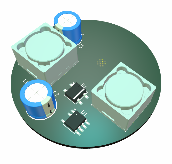 Este regulador viene en formato SO-8C, lo que es un tamaño bastante pequeño para la tarea que tiene que cumplir, el problema son los componentes a su alrededor.