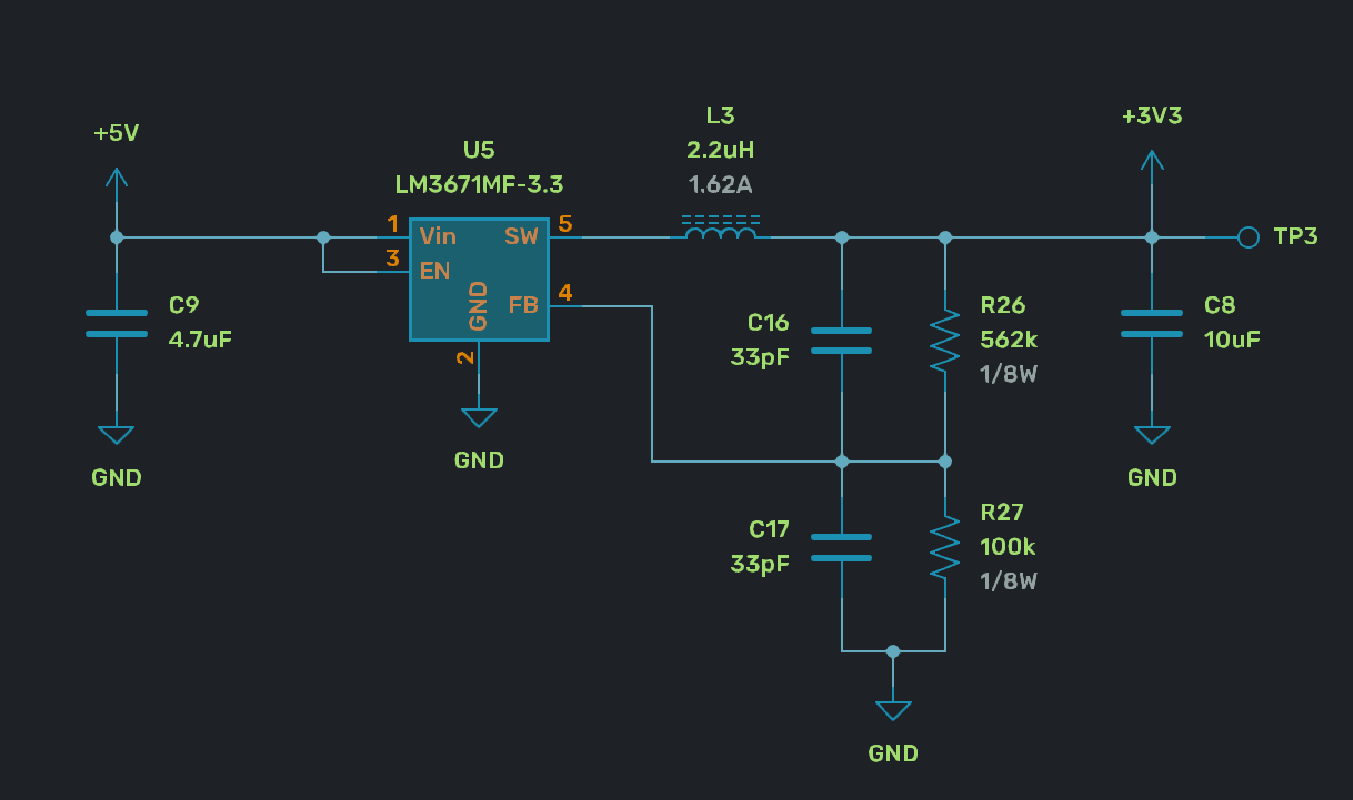 Esta fuente luego se reduce a 3.3V usando una fuente switching fija con un eficiencia del 95% esto para ahora la máxima potencia posible ya que la activación del relé puede hacer cosas raras que no quiero que me sorprendan.