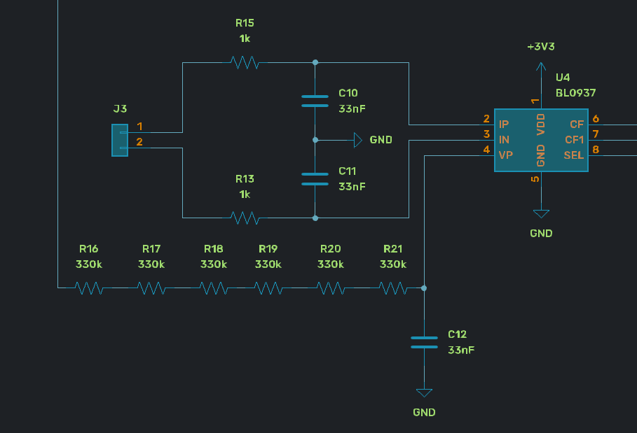 Para esto use el integrado BL0937 el cual ya habíamos analizado antes cuando desarme el smart plug de Aliexpress. A pesar de ser un integrado bien chino, me parece interesante la forma en la que se mide la energía, ademas de tener librerías ya disponibles en IDF y también se encuentra en LCSC, esto me dio pie para decidir usarlo.